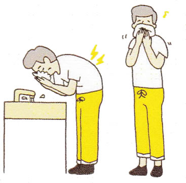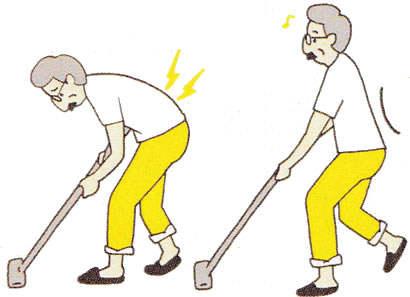 洗顔時は、顔を洗面台に近づけて前かがみ姿勢になり、しかも両手は水をすくうために上半身を支えることができませんので、腰に大きな負担がかかります。顔を洗うときでも、なるべく腰を反って腰椎の前弯を保った姿勢でおこないましょう。ちなみに、腰痛がひどいときは、洗顔は、ぬらしたタオルで顔をふく程度にしておくのがおすすめです。 - 掃除機掛け