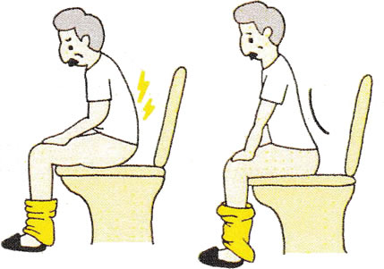 トイレで息むと、前かがみ姿勢になりがちです。トイレに座る時間はできるだけ短くして、座りながらも腰椎前弯を保つ姿勢をしましょう。和式のトイレは、どうしても腰椎前弯を保つことが難しいので、なるべく避けましょう。 - 庭仕事