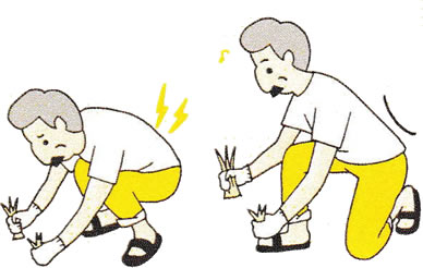 庭の草むしりは、つい夢中になって、長時間しゃがんでしまいがちですが、可能であればひざをついて作業をして、なるべく腰を反った姿勢を心がけ、15分おきくらいに立ち上がって腰を反らしてください。水撒きも、腰を反らした姿勢に注意しながら、行ってください。 - 車の運転